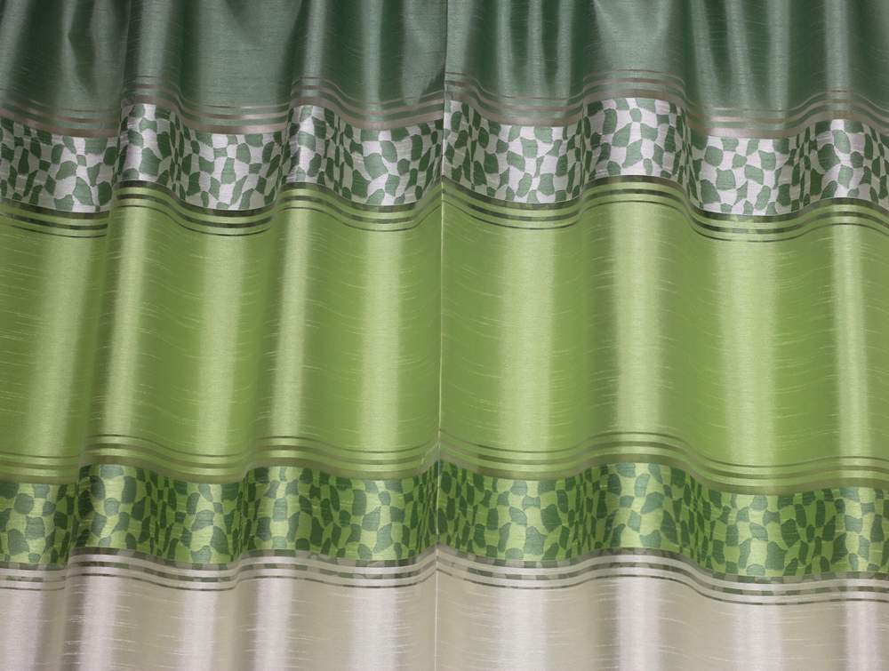 Látka je oboustranná, vzor pruhů zelené a smetanové barvy, šíře 140cm.