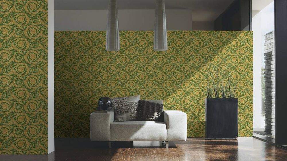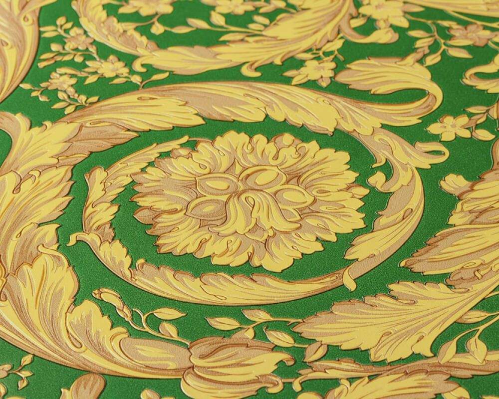 Ostatní vlastnosti:Barva tapety: žlutá, zelená, metalickáKatalog: Versace 4 - 2022Prostřih: 32 cmVzor: květiny, listy, ornamenty