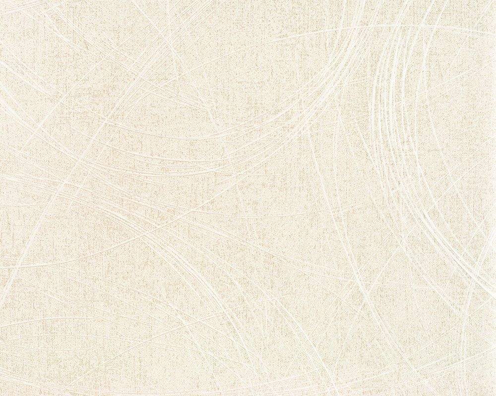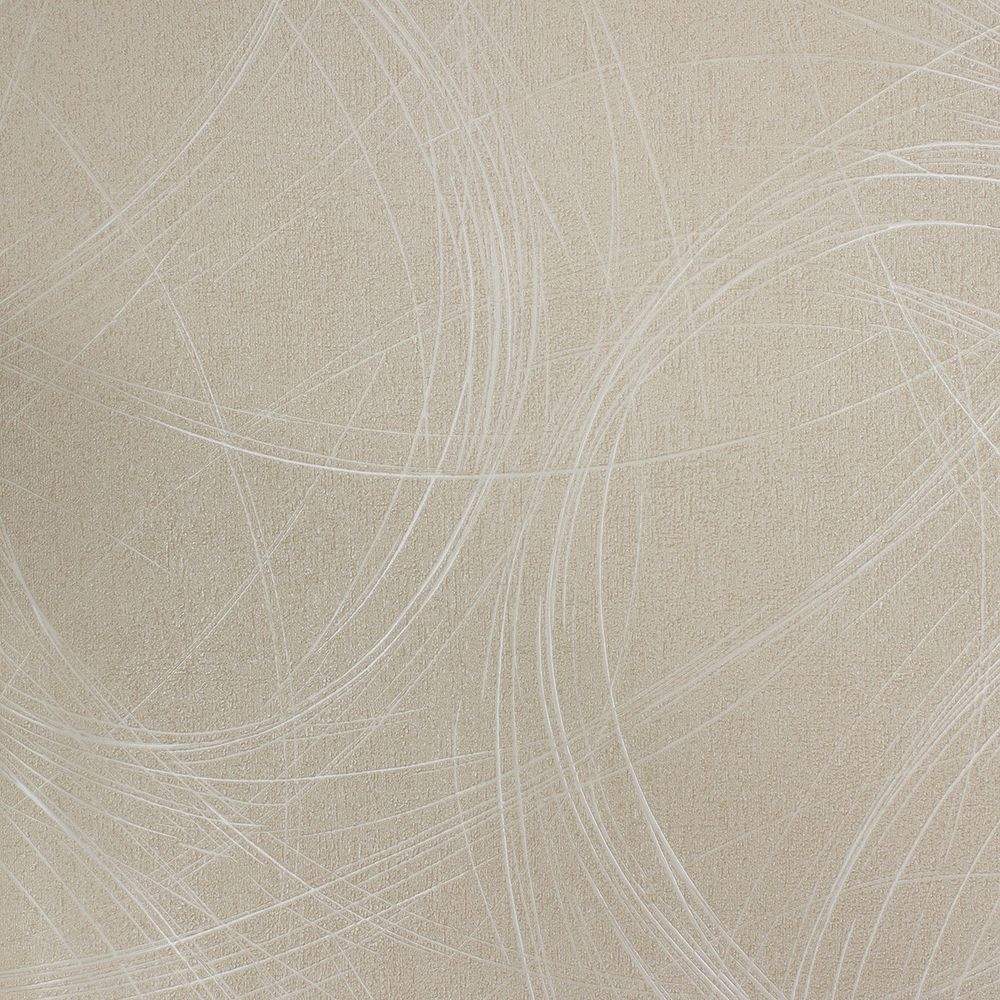 Moderní luxusní vliesová tapeta s nepravidelnými rýhami ve tvaru kruhů, smetanový podklad se strukturou a leskem, smetanové rýhy.