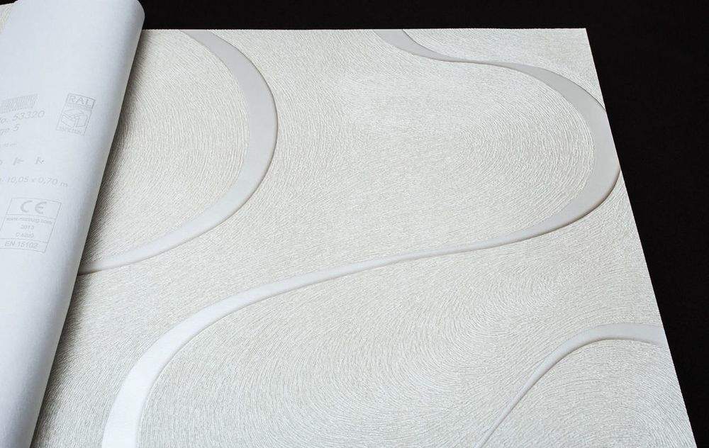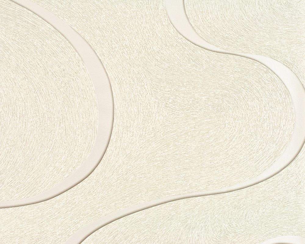 Moderní luxusní vliesová tapeta s výraznou strukturou a vlnami, smetanový podklad s jemným leskem, smetanové vlny s leskem.