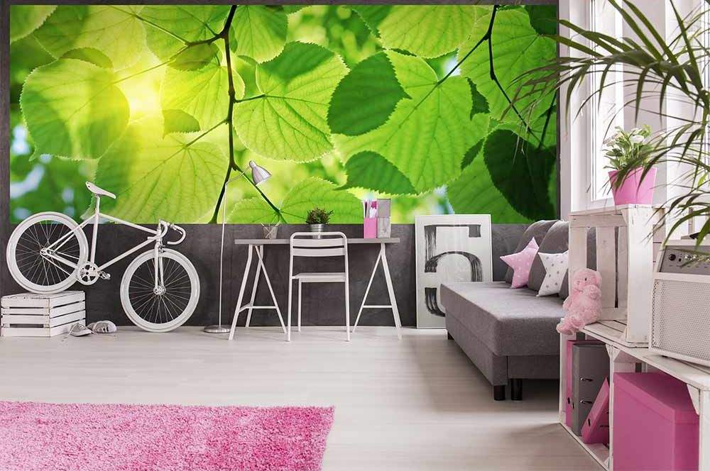Panoramatické vliesové fototapety MP-2-0107, fototapeta Green leaves, 375 x 150 cm + lepidlo zdarma