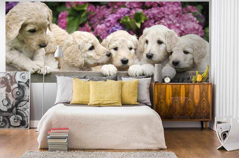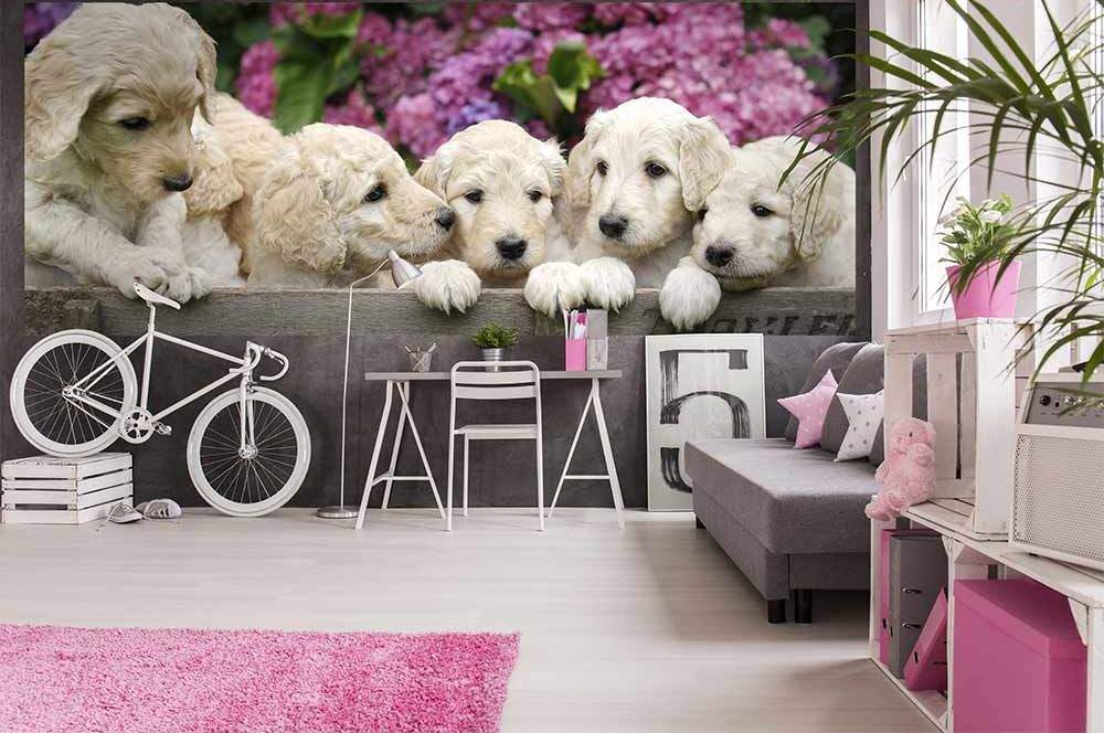 Panoramatické vliesové fototapety MP-2-0224, fototapeta Labrador puppies, 375 x 150 cm + lepidlo zdarma