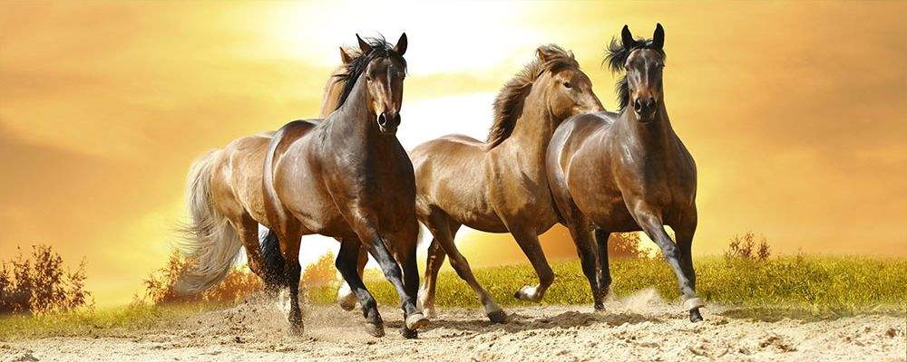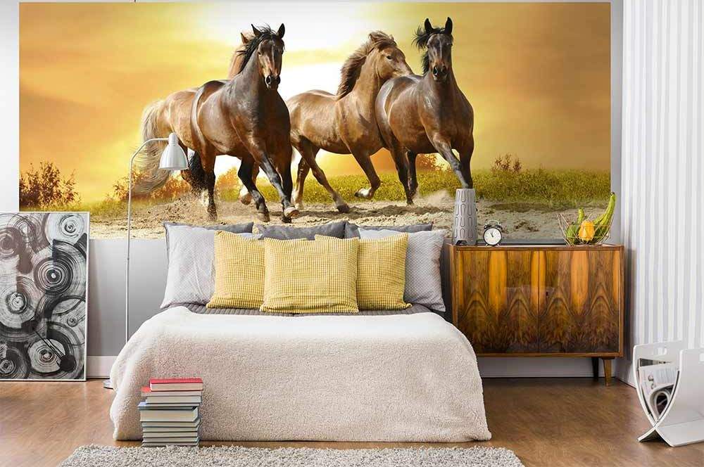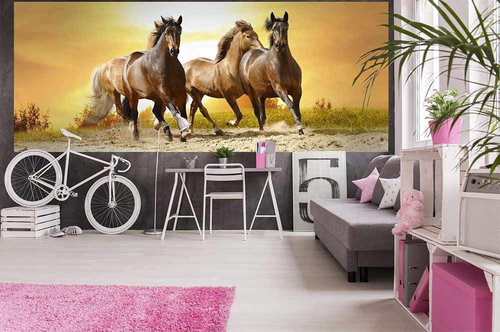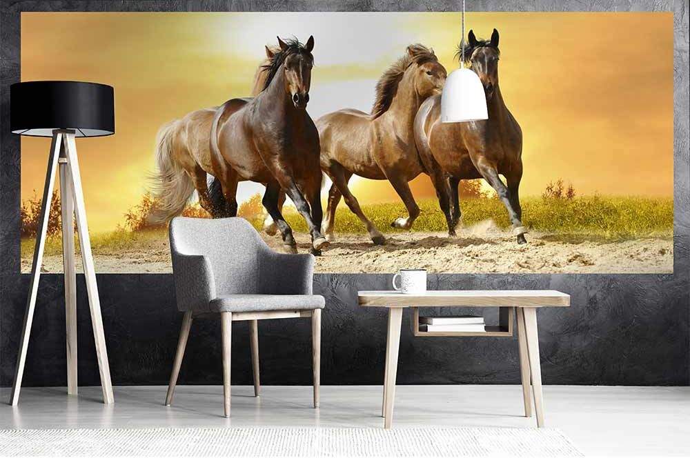 Panoramatické vliesové fototapety MP-2-0227, fototapeta Horses in sunset, 375 x 150 cm + lepidlo zdarma