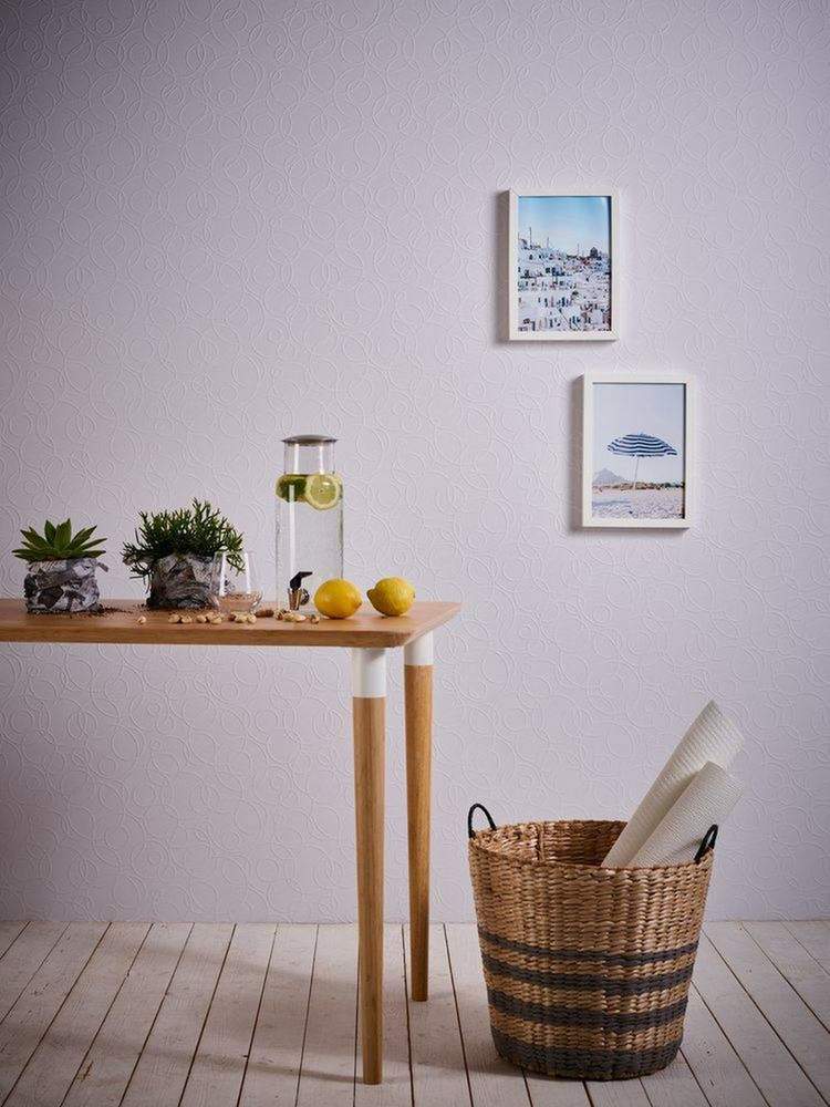 Jedná se o tenkou tapetu která na stěně vytvoří strukturální hrubost nebo ornamenty a ty se pak přetřou bílou či jinou barvou určenou na zeď, jak je ukázáno na obrázcích.