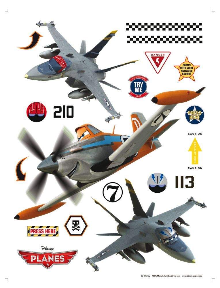 Samolepící dekorace AG Design - Disney DK 1772 Planes stíhačky, (65 x 85 cm)