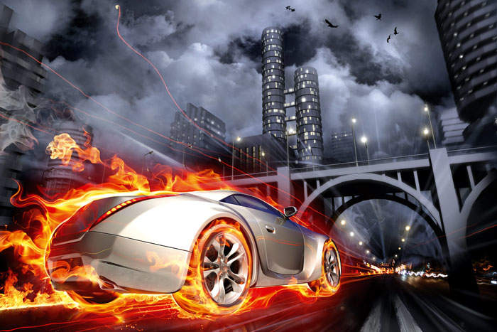Samolepící fototapety Dimex - fototapeta na podlahu FL255-016 Car in flames (255 x 170 cm)