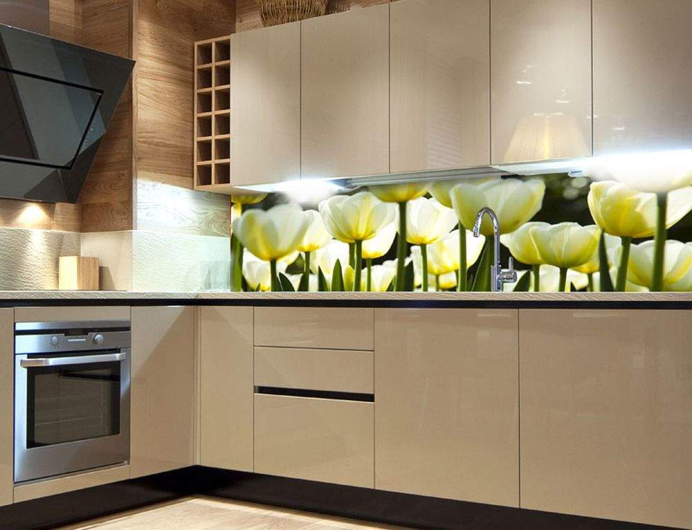 Samolepící fototapety do kuchyně - fototapeta KI180-009 White tulips (180 x 60 cm)