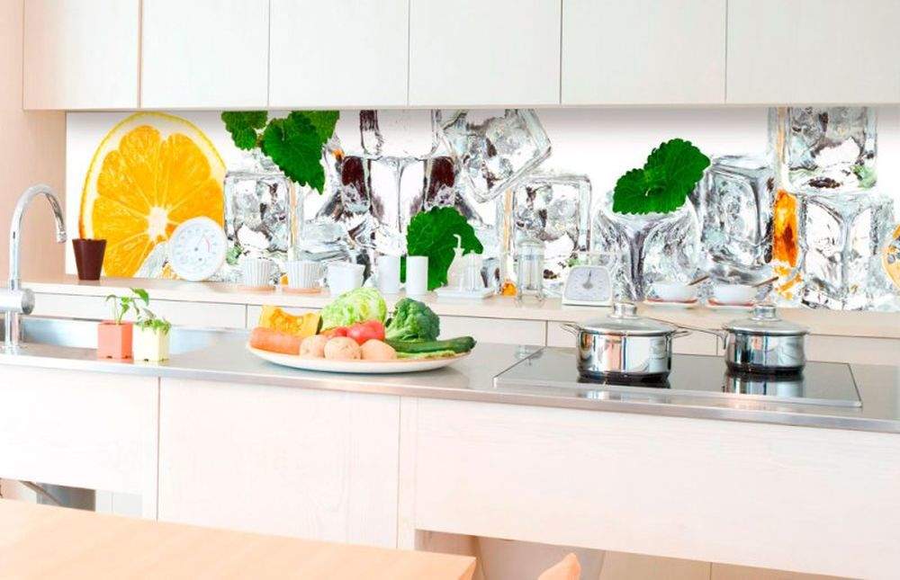 Samolepící fototapety do kuchyně - fototapeta KI350-023 Lemon and ice (350 x 60 cm)