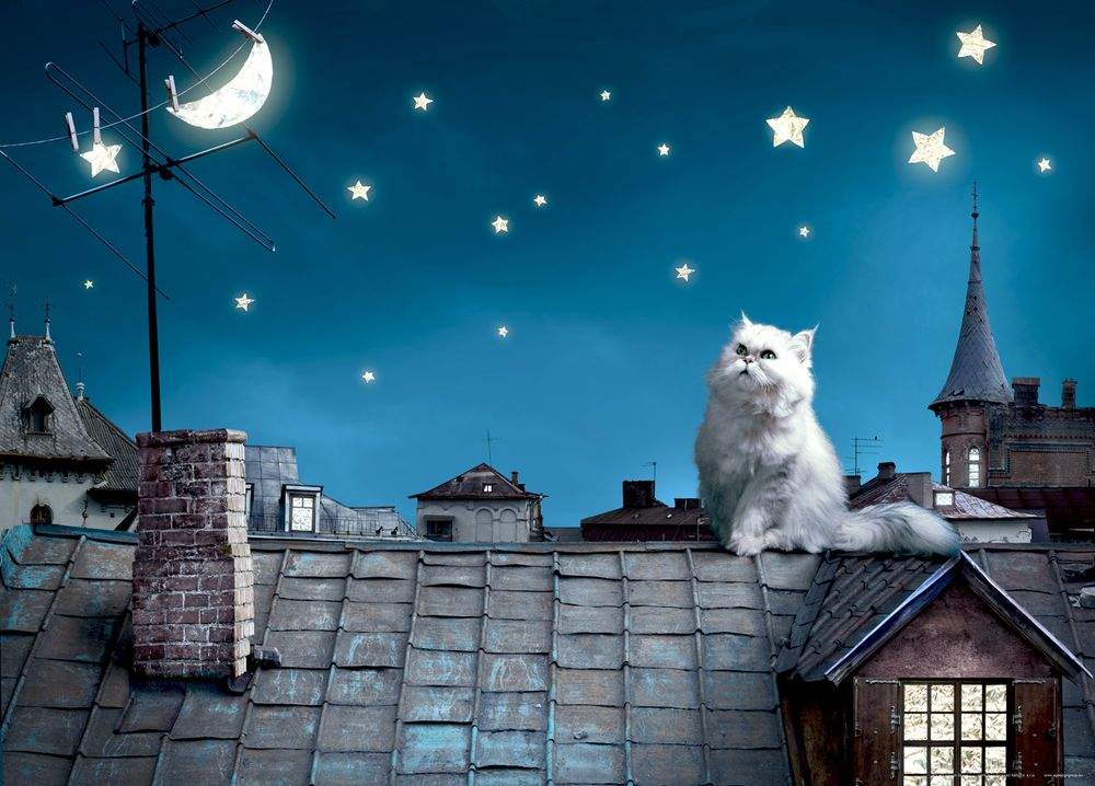 Vliesové fototapety AG Design FTNM2606 Kočka na střeše, fototapeta FTN M2606 Cat on root o rozměru 160x110 cm, lepidlo je součástí