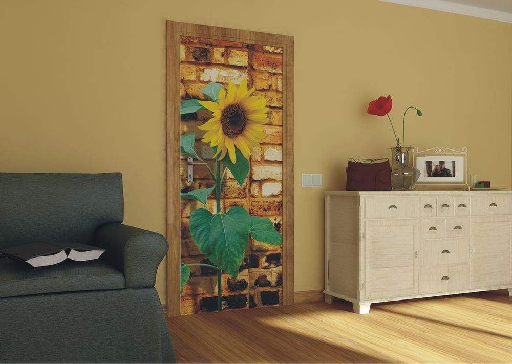 Vliesové fototapety AG Design FTNV2841 Slunečnice s cihlami, fototapeta FTN V2841 Sunflower on bricks o rozměru 90x202 cm, lepidlo je součástí