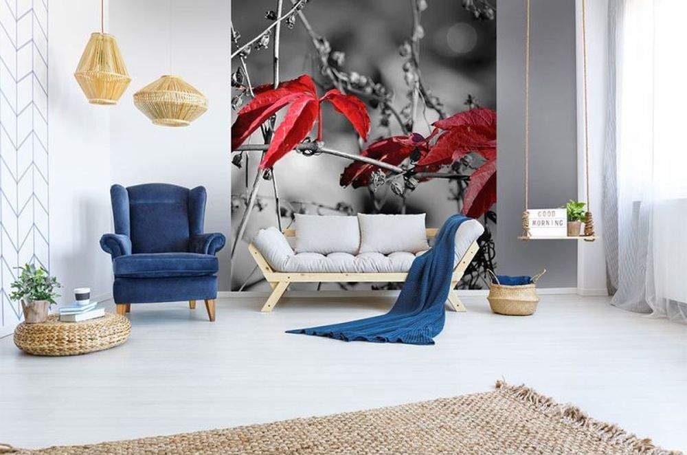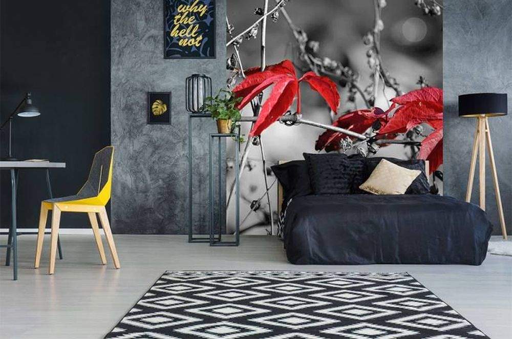 Vliesové fototapety MS-3-0110, fototapeta Red leaves on black, 225 x 250 cm + lepidlo zdarma