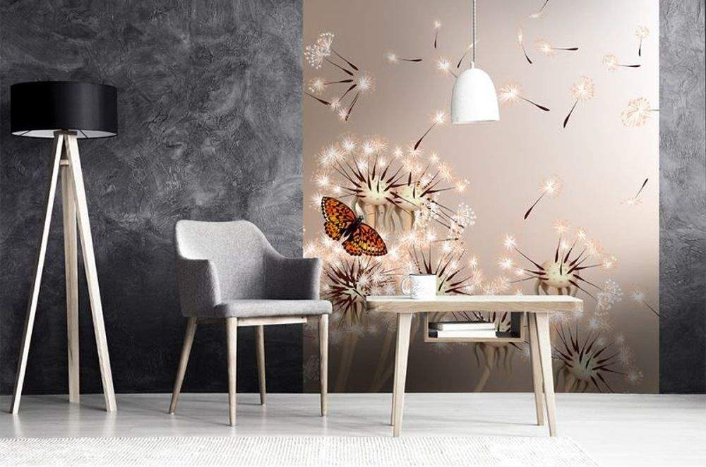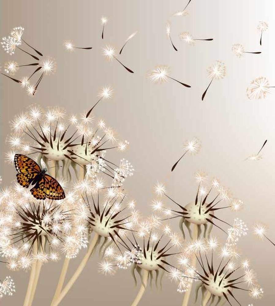 Vliesové fototapety MS-3-0148, fototapeta Dandelions and butterfly, 225 x 250 cm + lepidlo zdarma