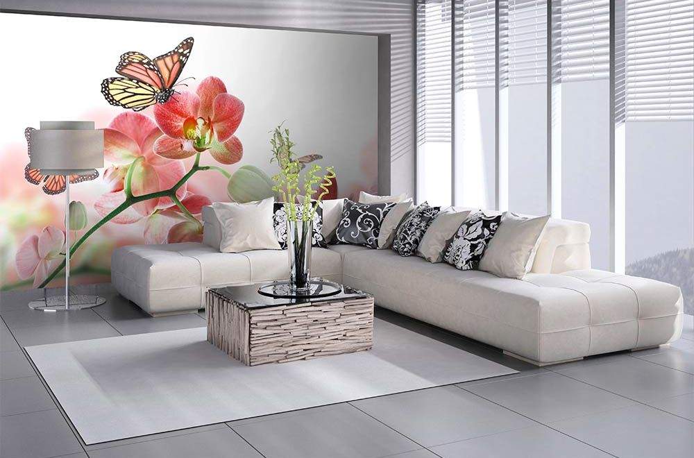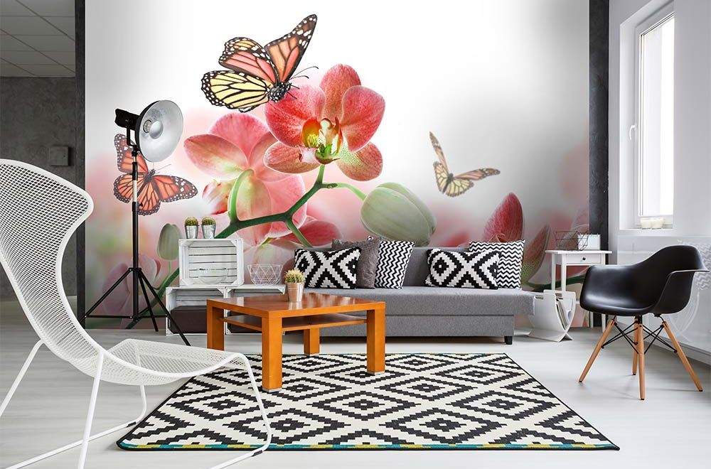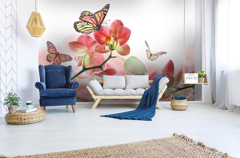 Vliesové fototapety MS-5-0146, fototapeta Orchids and butterfly, 375 x 250 cm + lepidlo zdarma