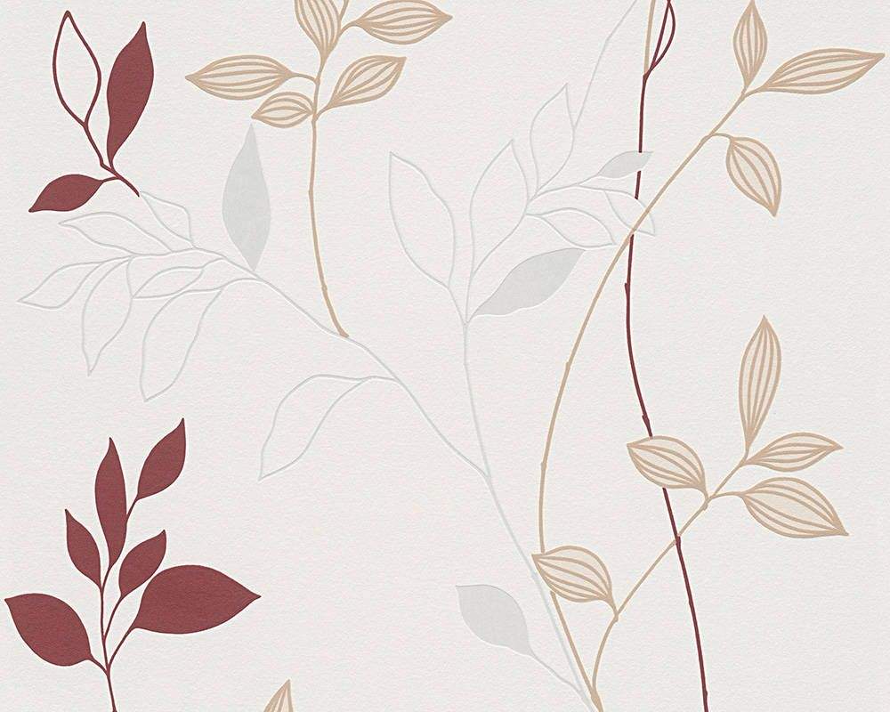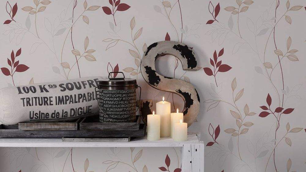 Moderní vliesová tapeta s květinovým vzorem, smetanový podklad, vínové a béžové květy.