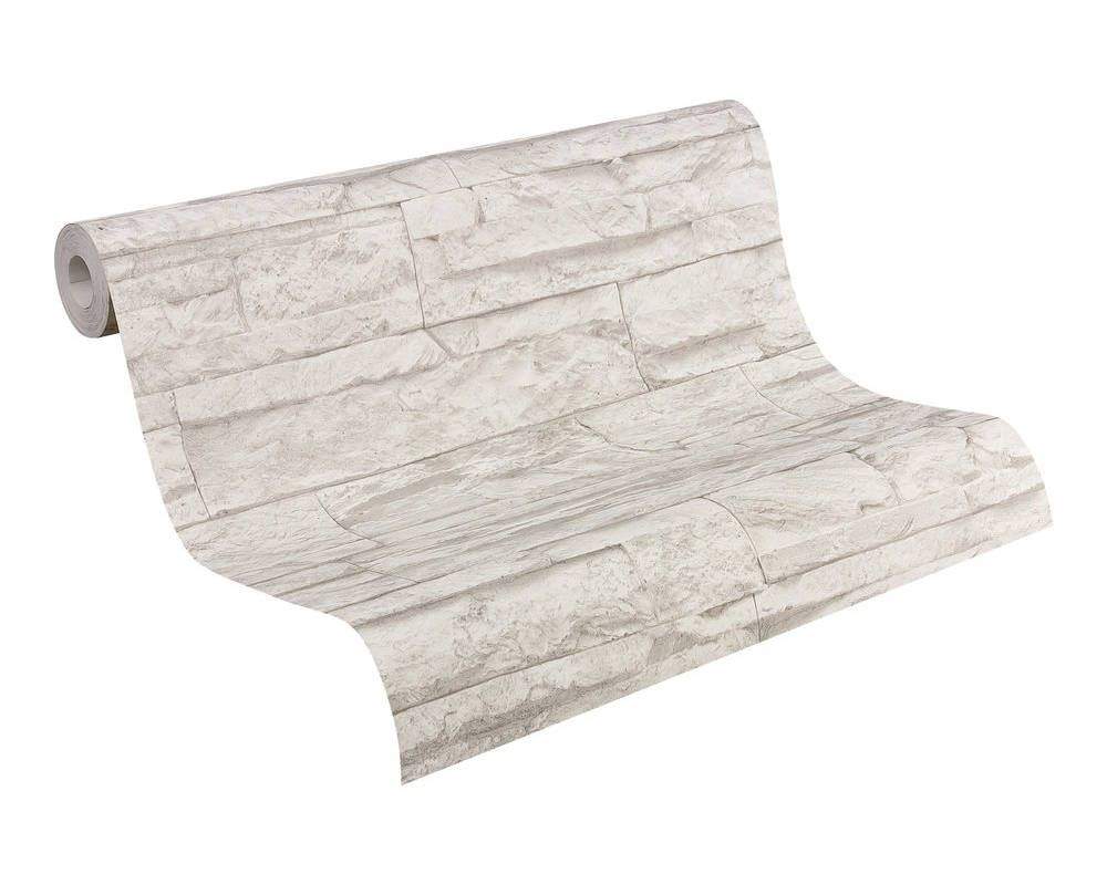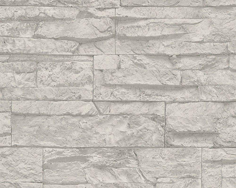 Moderní vliesová tapeta - imitace přírodní kámen, šedo-bílá barva.