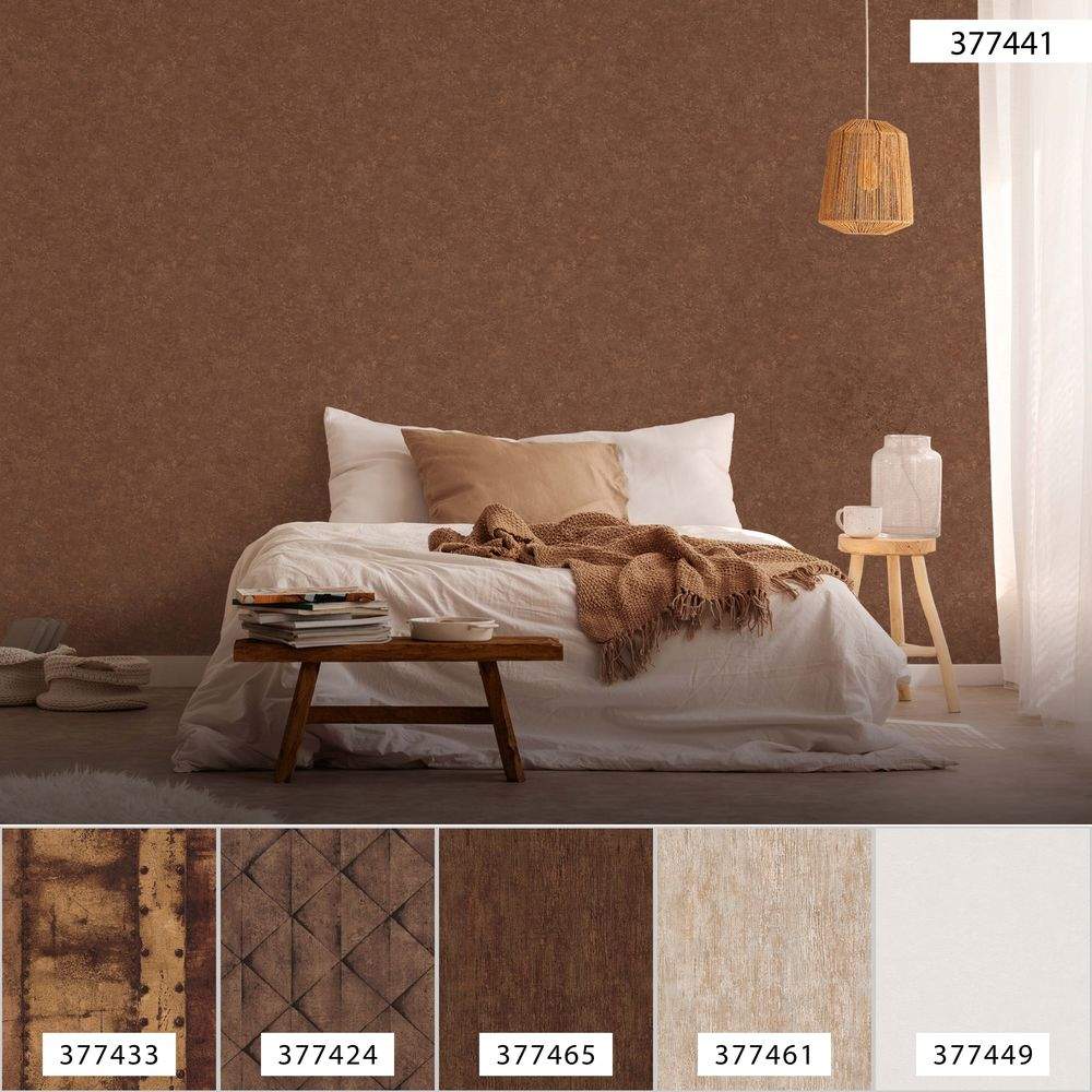 Ostatní vlastnosti:Barva tapety: hnědá, zlatáKatalog: Industrial 2023Prostřih: 0 cmVzor: jednobarevný, přírodní materiály, moderní, strukturální