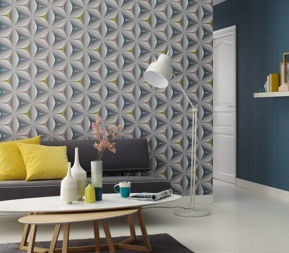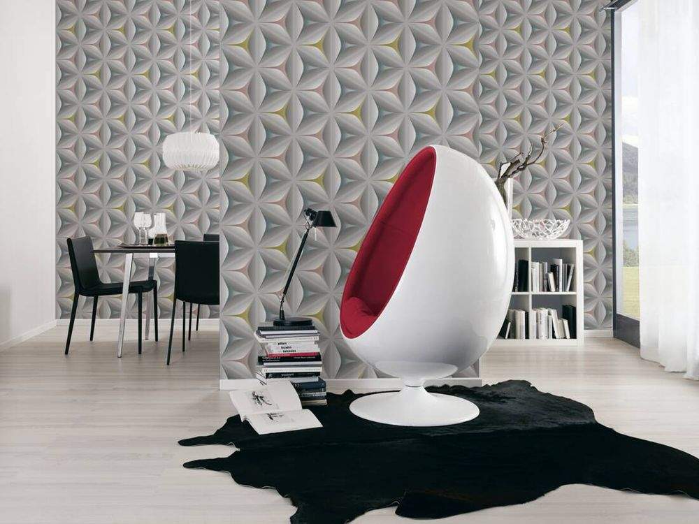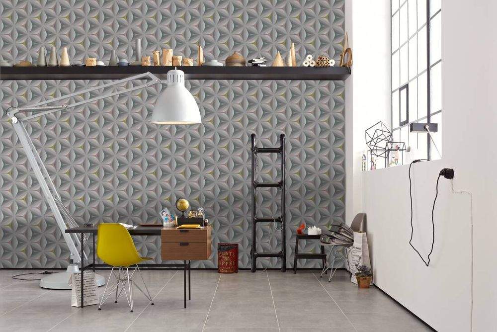 Ostatní vlastnosti:Barva tapety: šedá, směs barevKatalog: Move Your Wall 2017Prostřih: 64 cmVzor: geometrický, 3D