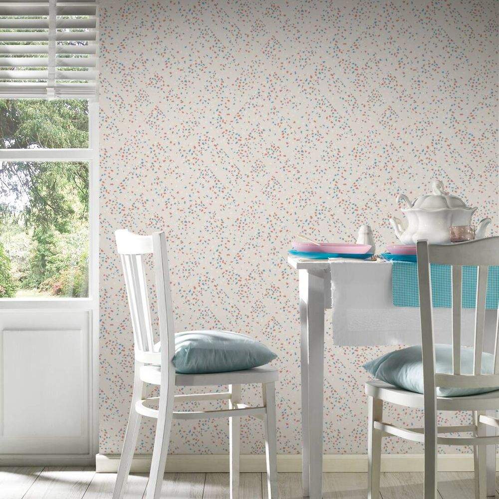 Ostatní vlastnosti:Barva tapety: krémová, cihlová, modráKatalog: New Walls 2022Prostřih: 64 cmVzor: grafika, strukturální