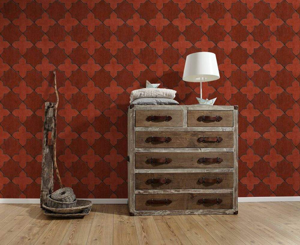 Ostatní vlastnosti:Barva tapety: cihlováKatalog: New Walls 2022Prostřih: 53 cmVzor: ornamenty, obklady