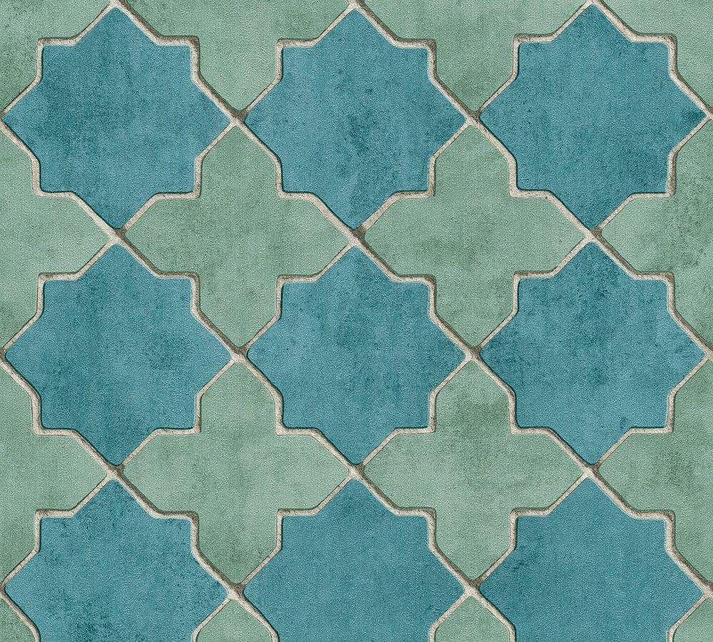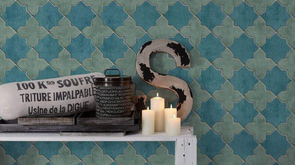 Ostatní vlastnosti:Barva tapety: zelená, tyrkysováKatalog: New Walls 2022Prostřih: 53 cmVzor: ornamenty, obklady
