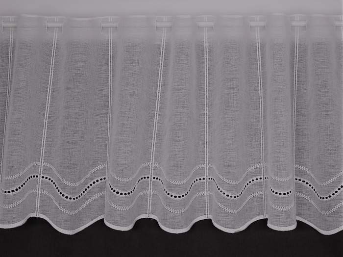 Barva bílá, záclonu je možno objednat ve výšce 45cm, 60cm, 80cm,100cm.