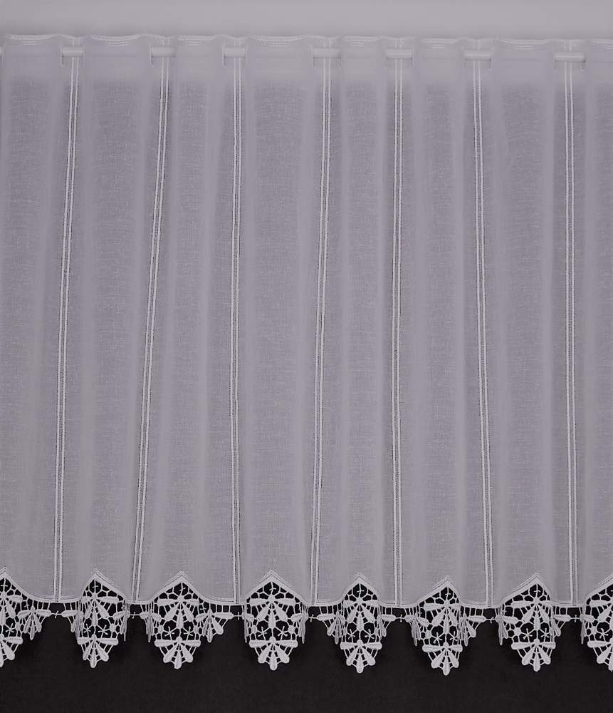 Barva bílo-smetanová, záclonu je možno objednat ve výšce 50cm, 70cm