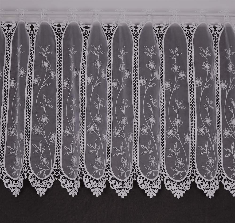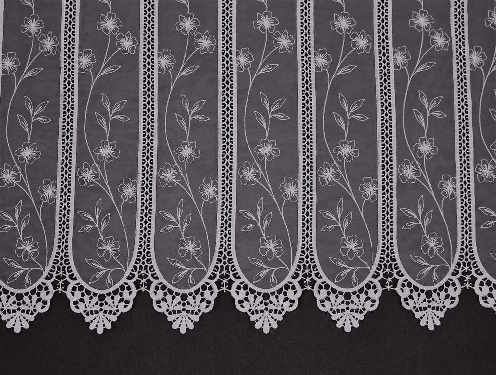 Luxusní vyšívaná vitrážková záclona s očky na protažení tyčky. Výška 60cm.