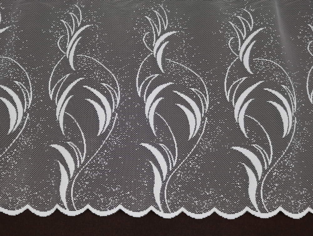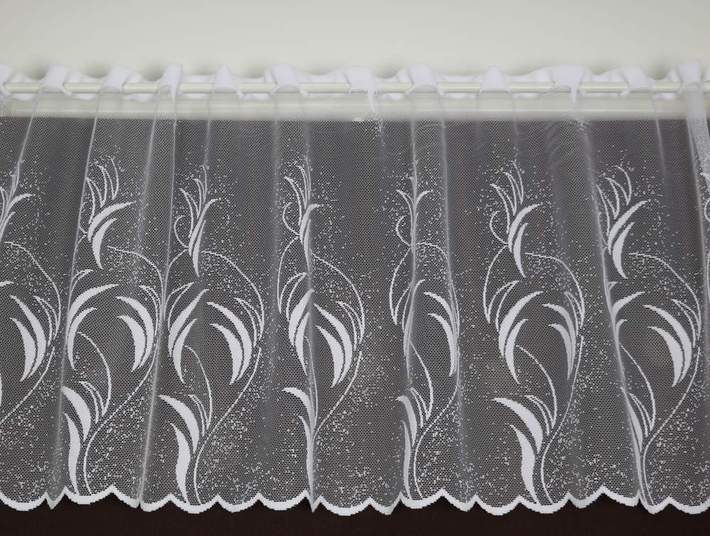 Barva bílá, záclonu je možno objednat ve výšce 40cm, 50cm, 80cm.