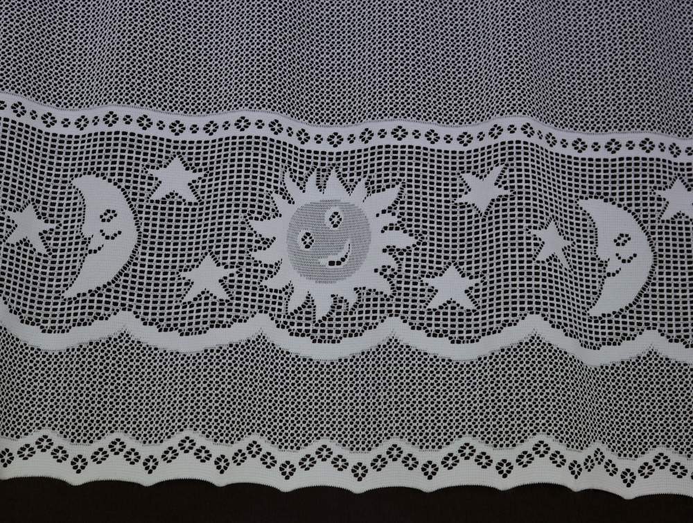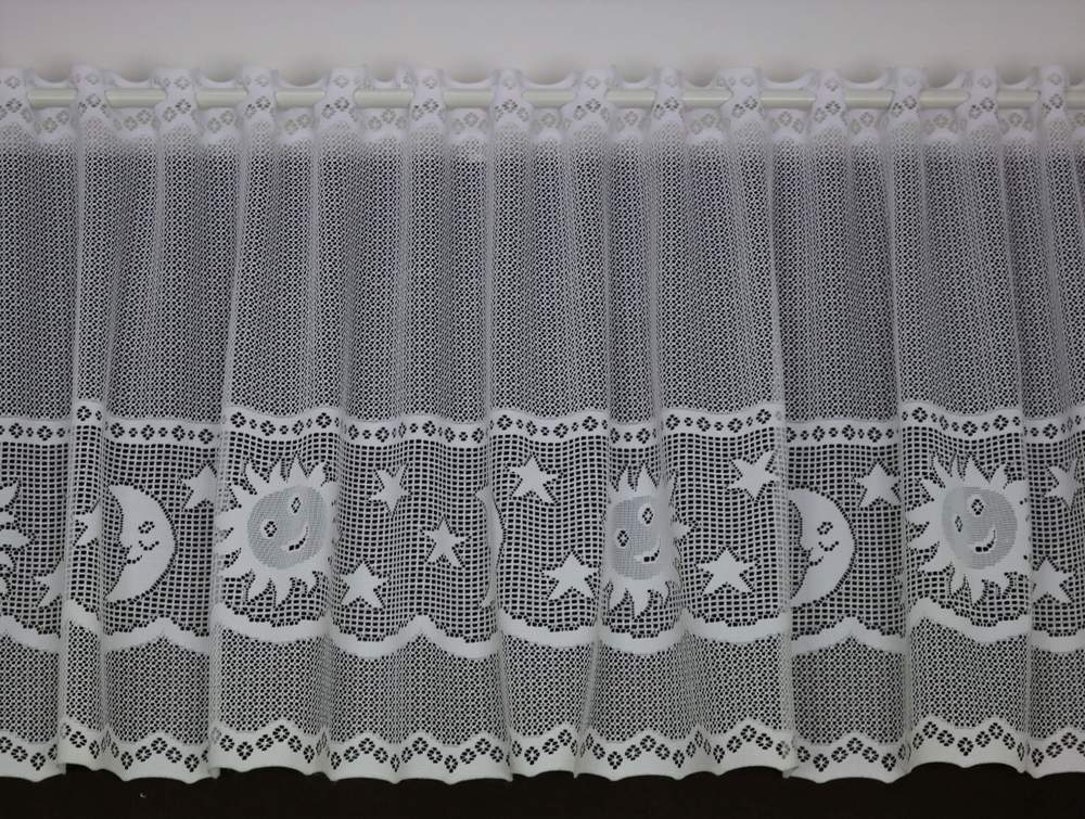 Dětská žakárová vitrážková záclona s očky na protažení tyčky.