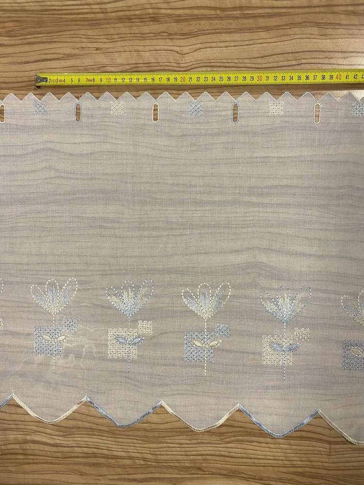 Moderní vyšívaná vitrážková záclona na batistu s očky na protažení tyčky.